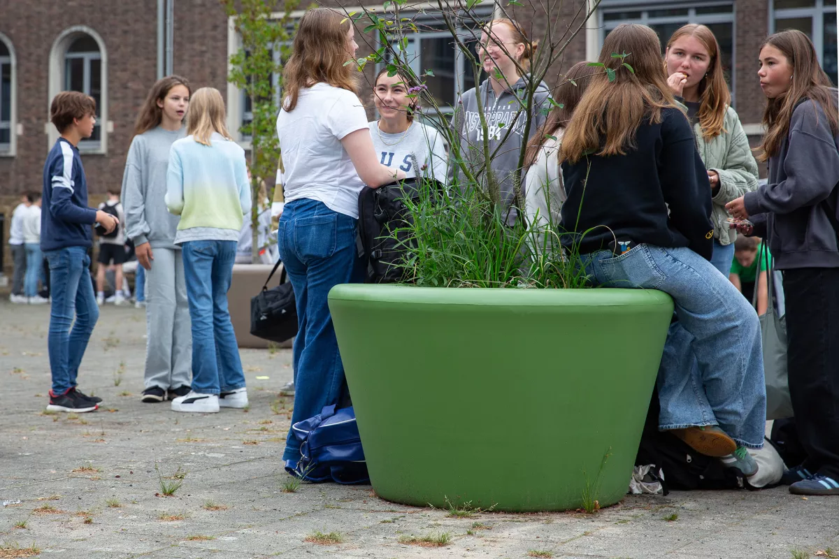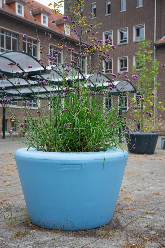 De kleurrijke en hippe LOOP© Cone kunststof bloembakken brengen groen op je speelplaats of in je publieke ruimte. Ze zijn geschikt voor grote planten en struiken en kleine bomen. Je kan ze met water of zand verzwaren of verankeren aan de bodem. Best voorzien je nog een anti-worteldoek.
