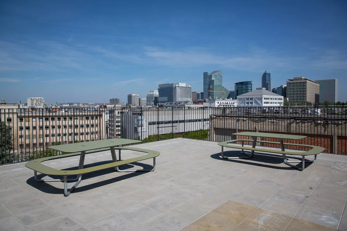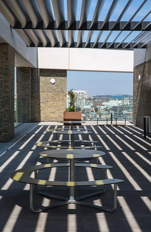 PLATEAU© is een uitgebreide familie straatmeubilair gemaakt van thermische verzinkt staal en HPL. Deze knap vormgegeven serie bestaat uit zitbanken, tafels, stoelen, picknicktafels en zitelementen. HPL bestaat voor 65% uit gerecycleerd houtafval dat wordt samengeperst onder hoge druk en voorzien van een UV-bestendige, krasvaste en grafitti-verwijderbare gekleurde toplaag die het meubilair zijn fraaie uitstraling geeft.