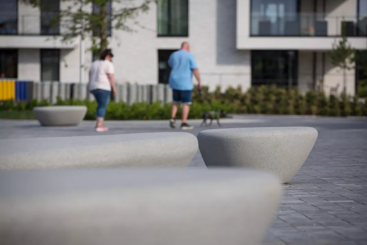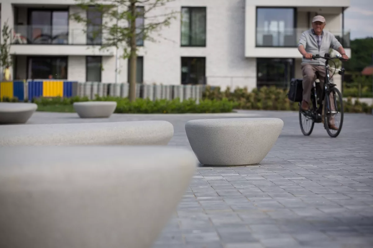 Betonnen zitelementen voor het Passantenplein in Bocholt