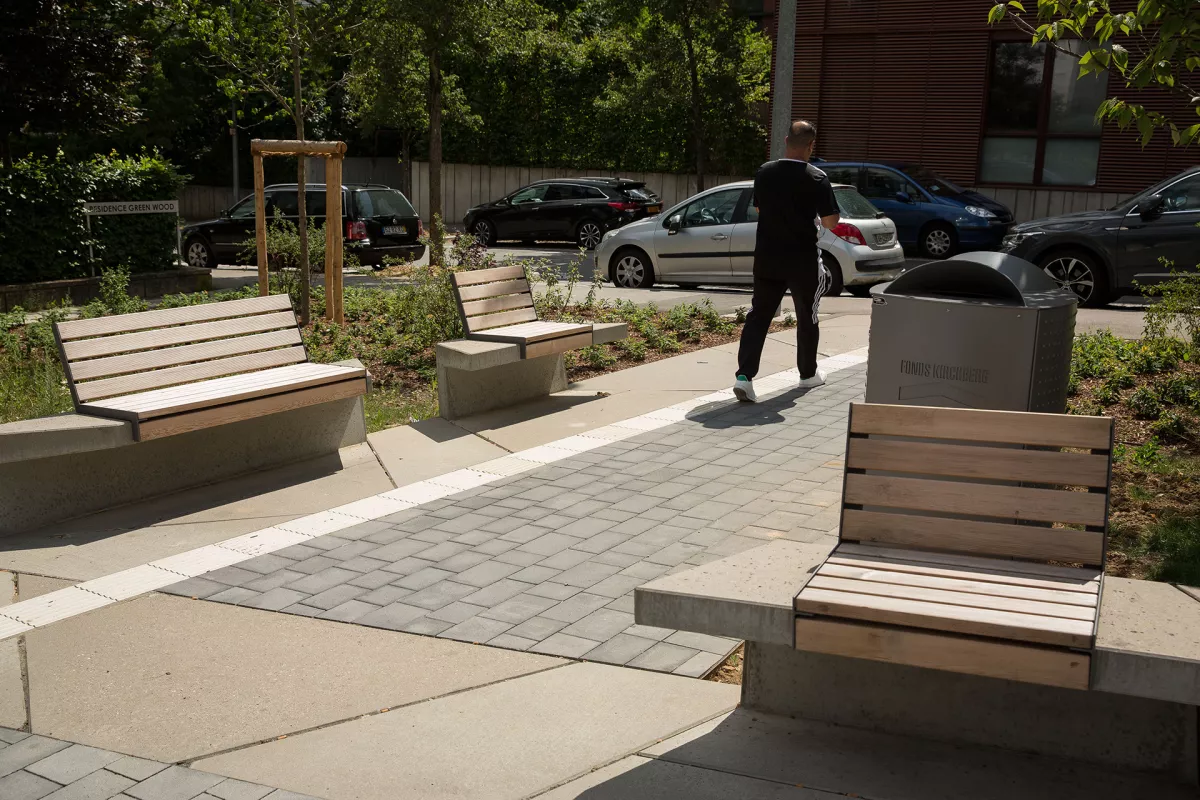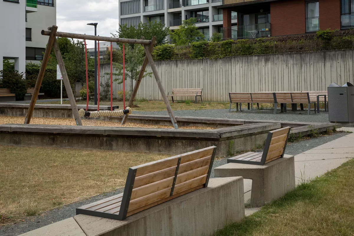 PANACHE’s straatmeubilair vond onder leiding van het Neder-Zwitserse architectenbureau Güller Güller zijn plaats in dit project. Tientallen comfortabele HOPHOP© zitbanken en zitelementen gemonteerd op gerecycleerde betonnen elementen voorzien van ongebehandeld Larikshout blenden zich perfect in de alomtegenwoordige stadstuinen, boom- en wijngaarden, de vele speeltuinen, parken en pleinen en de moderne residentiële gebouwen en kantoren.