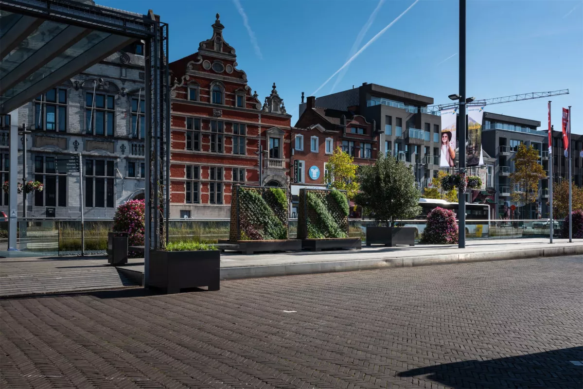 POC vergroende de periferie van Vlaanderens grootste betonwoestijn. Boombakken, Living Walls en op maat vervaardigde pergola’s brengen voortaan een groene toets op het grijze marktplein van Sint-Niklaas. Al deze straatmeubelen zijn verplaatsbaar en onderhoudsextensief uitgevoerd.