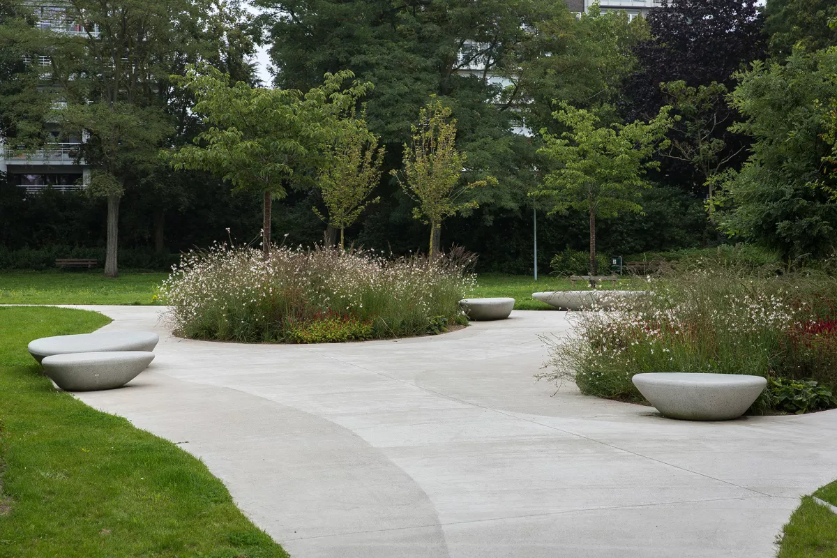 Elegant betonnen zitmeubilair voor woonproject in Sint-Andries Brugge