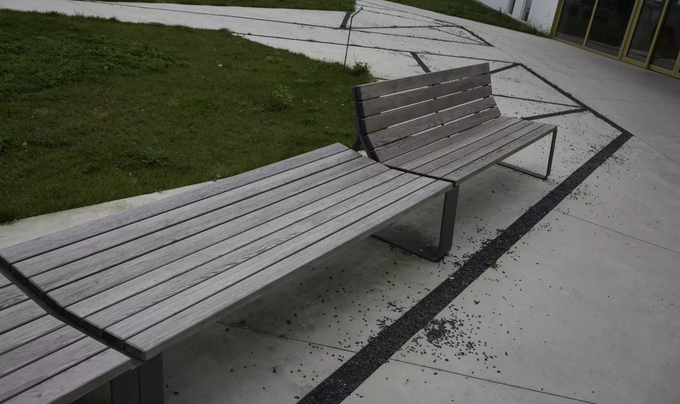 Larikshouten zitbanken voor omgevingsaanleg Ac/Dc Staden