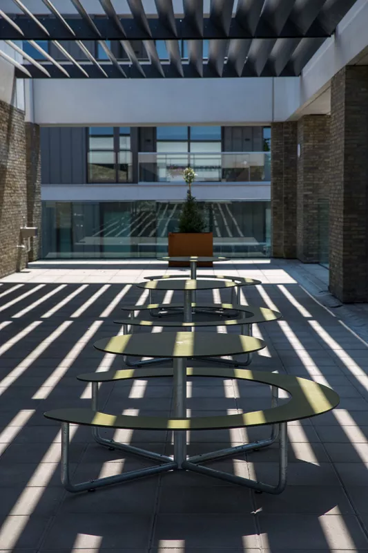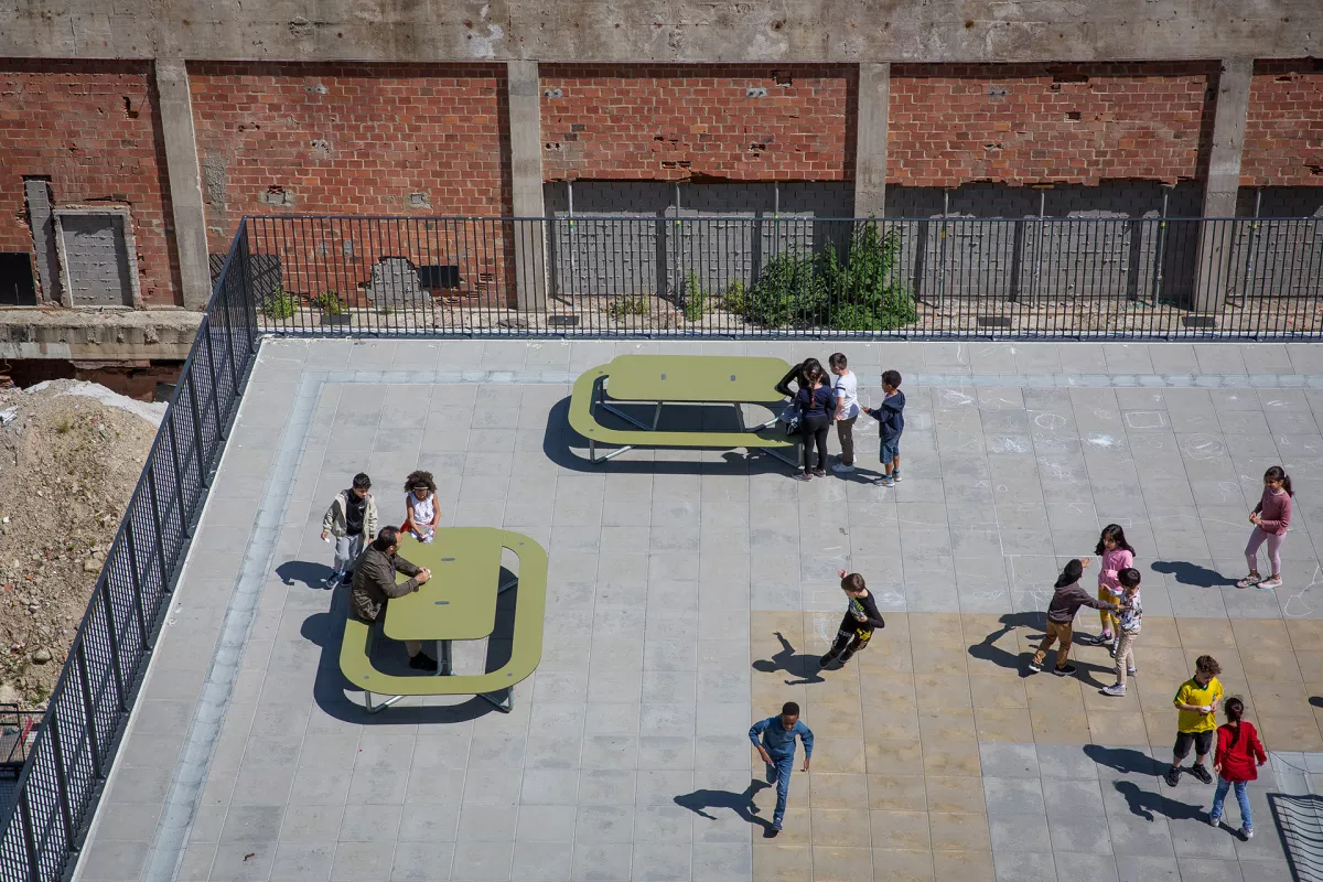 De compleet vernieuwde Basisschool Pacheco in hartje Brussel werd uitgerust met de robuuste picknicktafels PLATEAU© van onze Deense Partner Out-sider. Met hun strakke ontwerp en eenvoudig te reinigen oppervlak sluiten deze picknicktafels perfect aan bij de hedendaagse behoeften van het onderwijs. Ze bieden een veelzijdige omgeving waarin leerlingen snel kunnen schakelen tussen verschillende activiteiten, zoals lezen en lunchen. Dank aan Birgid Decleyn van het Pacheco-team voor dit mooie project.